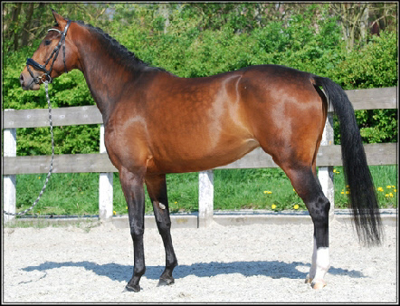 Komt uit een mooie predikaatrijke sportstam die fijne ijverige bewerkbare paarden met een heel fijn karakter geven.