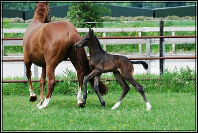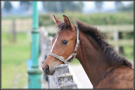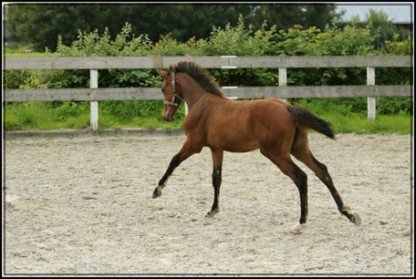 Het is een heel correct veulen qua bouw en constitutie, beweegt goed en is heel vrolijk.